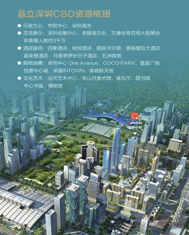 4、綜合體平臺(tái)金地中心屬于140萬平方米綜合體“深圳中心”的一部分,入駐企業(yè) 可享受全方位的綜合配套。(深圳中心綜合體還包含:21萬平方的豪宅“天元”、30 萬平方頂級(jí)商業(yè)“卓悅匯”、2000平方設(shè)計(jì)藝術(shù)中心、2萬平方CEO俱樂部)