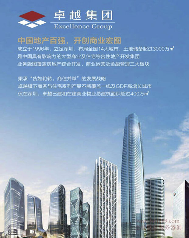 卓越集團(tuán):卓越集團(tuán)簡介:卓越集團(tuán):中國地產(chǎn)百強(qiáng)、開創(chuàng)商業(yè)宏圖、成立于1996年、立足深圳,布局全國14大城市、土地儲(chǔ)備超過3000萬m2 是中國具有影響力的大型商業(yè)及住宅綜合性地產(chǎn)開發(fā)集團(tuán)、業(yè)務(wù)版圖覆蓋房地產(chǎn)綜合開發(fā)、商業(yè)運(yùn)營及金融管理三大板塊秉承“貨如輪轉(zhuǎn)、商住并舉”的發(fā)展戰(zhàn)略、卓越旗下商務(wù)與住宅系列產(chǎn)品不斷覆蓋一線及GDP高增長城市、僅在深圳、卓越已建和在建商業(yè)物業(yè)總建筑面積超過400萬m
