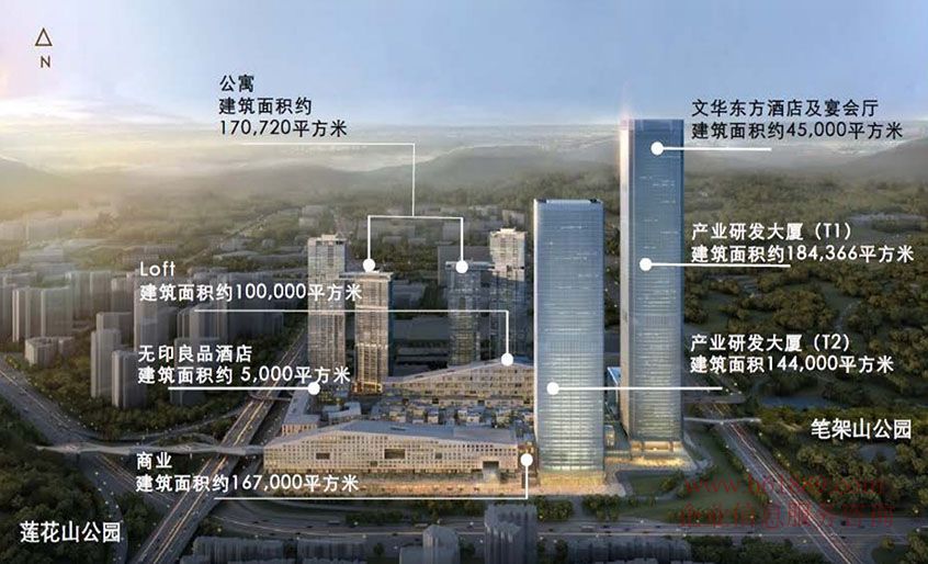 總建筑面積約:120萬平方米、總規(guī)劃及產(chǎn)業(yè)研發(fā)大廈規(guī)劃設(shè)計公司SOM、商業(yè)設(shè)計公司:ArqUitectonicd、商業(yè)樓層:B1到L3、停車位超過:4000個