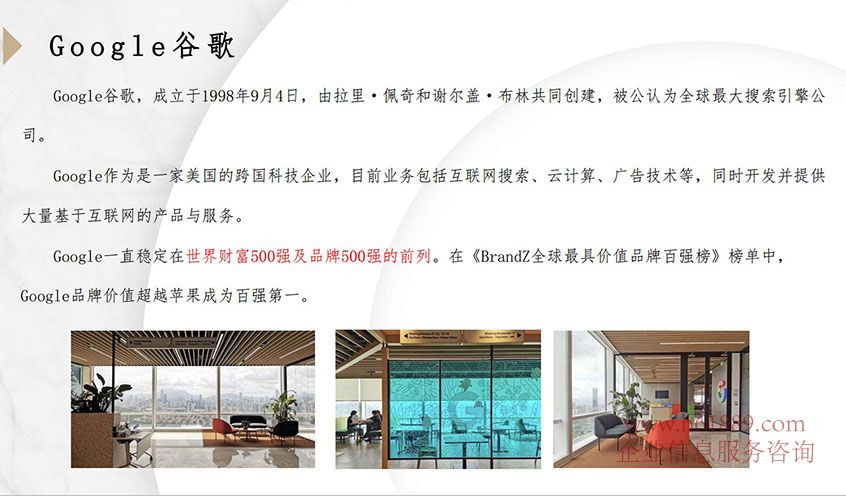 Google 谷歌、Google谷歌,成立于1998年9月4日,由拉里?佩奇和謝爾蓋?布林共同創(chuàng)建,被公認為全球最大搜索引擎公司