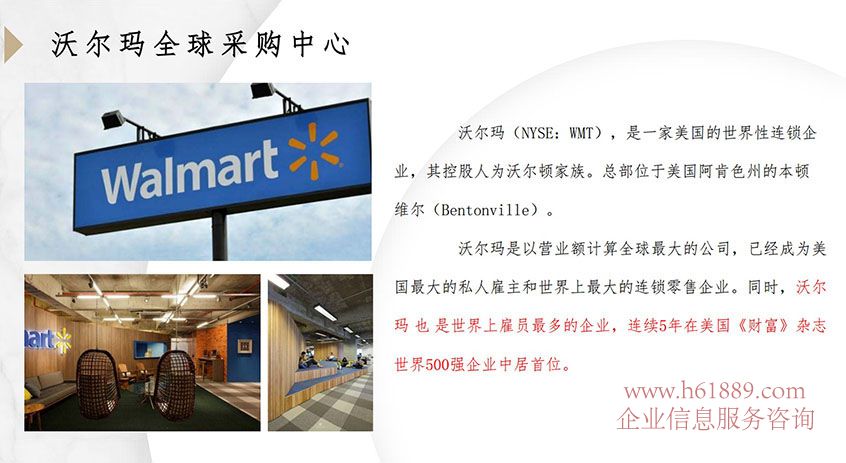 維爾(Bentonville)、沃爾瑪是以營業(yè)額計算全球最大的公司,已經(jīng)成為美國最大的私人雇主和世界上最大的連鎖零售企業(yè)。同時,沃爾瑪 也 是世界上雇員最多的企業(yè),連續(xù)5年在美國《財富》雜志世界500強企業(yè)中居首位
