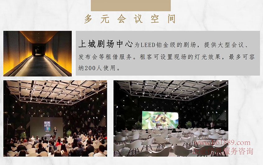 上城劇場中心為LEED鉑金級的劇場,提供大型會議、發(fā)布會等租借服務(wù)。租客可設(shè)置現(xiàn)場的燈光效果,最多可容納200人使用