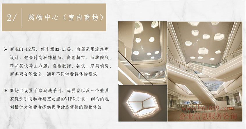 商業(yè)B1-L2層,停車場B3-L1層,內(nèi)部采用流線型設(shè)計,包含時尚服飾精品、高端超市、品牌院線、精品餐飲等主力店,囊括服飾、餐飲、家庭消費、商務(wù)聚會等業(yè)態(tài),滿足不同消費群體的需求商場共設(shè)置了家庭洗手間、母嬰室以及一個兼具家庭洗手間和母嬰室功能的VIP洗手間,細心的規(guī)劃設(shè)計為消費者提供更為舒適便捷的購物體驗