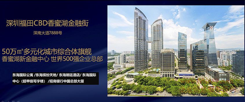 深圳福田CBD香蜜湖金融街、深南大道7888號(hào)、50萬(wàn)㎡多元化城市綜合體旗艦、香蜜湖新金融中心 世界500強(qiáng)企業(yè)總部、東海國(guó)際公寓 /東海繽紛天地/ 東海朗廷酒店/ 東海國(guó)際中心(超甲級(jí)寫字樓) /招商銀行中國(guó)總部大廈