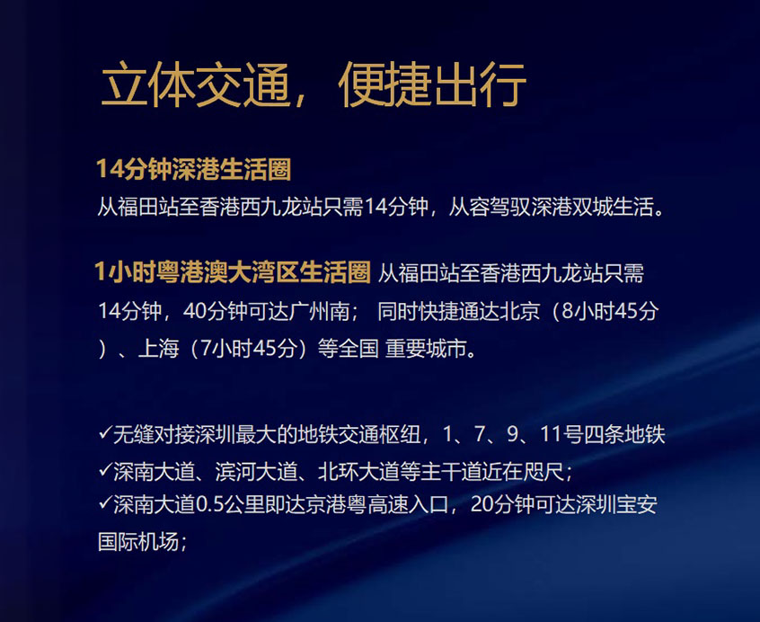 無(wú)縫對(duì)接深圳最大的地鐵交通樞紐:1、7、9、11號(hào)四條地鐵、深南大道、濱河大道、北環(huán)大道等主干道近在咫尺、深南大道0.5公里即達(dá)京港粵高速入口、20分鐘可達(dá)深圳寶安 國(guó)際機(jī)場(chǎng)