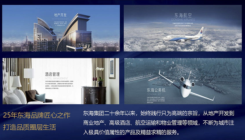 25年?yáng)|海品牌匠心之作、打造品質(zhì)圈層生活、東海集團(tuán)二十余年以來(lái),始終踐行只為高端的宗旨,從地產(chǎn)開(kāi)發(fā)到 商業(yè)地產(chǎn)、高級(jí)酒店、航空運(yùn)輸和物業(yè)管理等領(lǐng)域,不斷為城市注 入極具價(jià)值屬性的產(chǎn)品及精益求精的服務(wù)