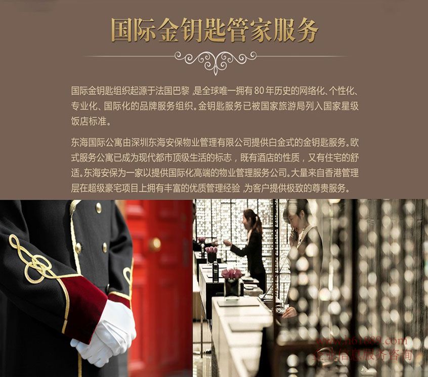 東海國(guó)際公寓由深圳東海安保物業(yè)管理有限公司提供白金式的金鑰匙服務(wù)。歐式服務(wù)公寓已成為現(xiàn)代都市頂級(jí)生活的標(biāo)志,既有酒店的性質(zhì),又有住宅的舒適。東海安保為一家以提供國(guó)際化高端的物業(yè)管理服務(wù)公司。大量來(lái)自香港管理層在超級(jí)豪宅項(xiàng)目上擁有豐富的優(yōu)質(zhì)管理經(jīng)驗(yàn)為客戶提供極致的尊貴服務(wù)