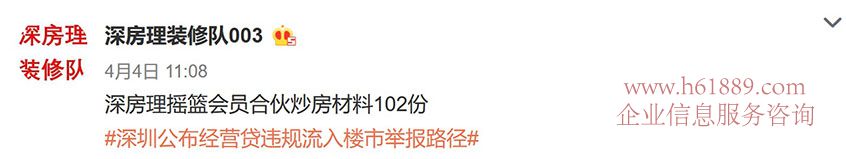 2021年4月4日、一個(gè)名叫“深房理裝修隊(duì)003”的用戶(hù),在個(gè)人社交平臺(tái)上,曝光了深圳的房地產(chǎn)“大V”“深房理”的會(huì)員,利用假離婚等手段騙取購(gòu)房資格,并通過(guò)經(jīng)營(yíng)貸款購(gòu)房、炒房的詳實(shí)的資料,共計(jì)102份
