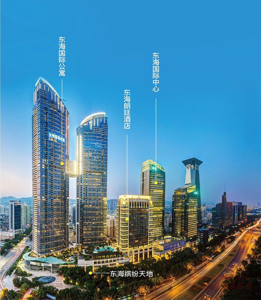 東海國(guó)際(東海國(guó)際中心)整個(gè)項(xiàng)目由辦公樓、酒店、商務(wù)公寓、商業(yè)四大部分組成、是現(xiàn)今深南大道兩旁最大的綜合建筑群、其中辦公樓2幢、高度約為190米/150米、酒店1座、約為100米、商務(wù)公寓2幢、高度約為300米/255米、還有約65365平方米的商業(yè)