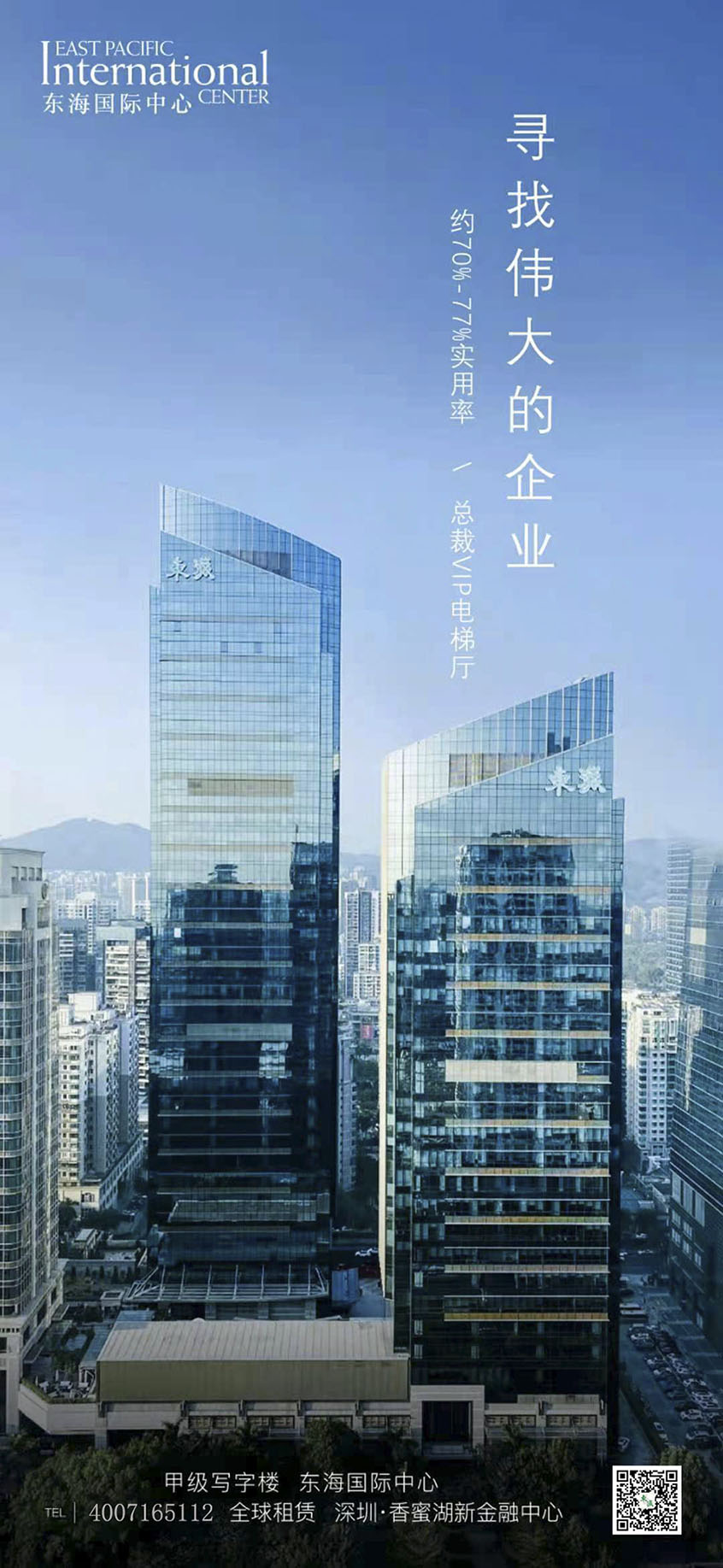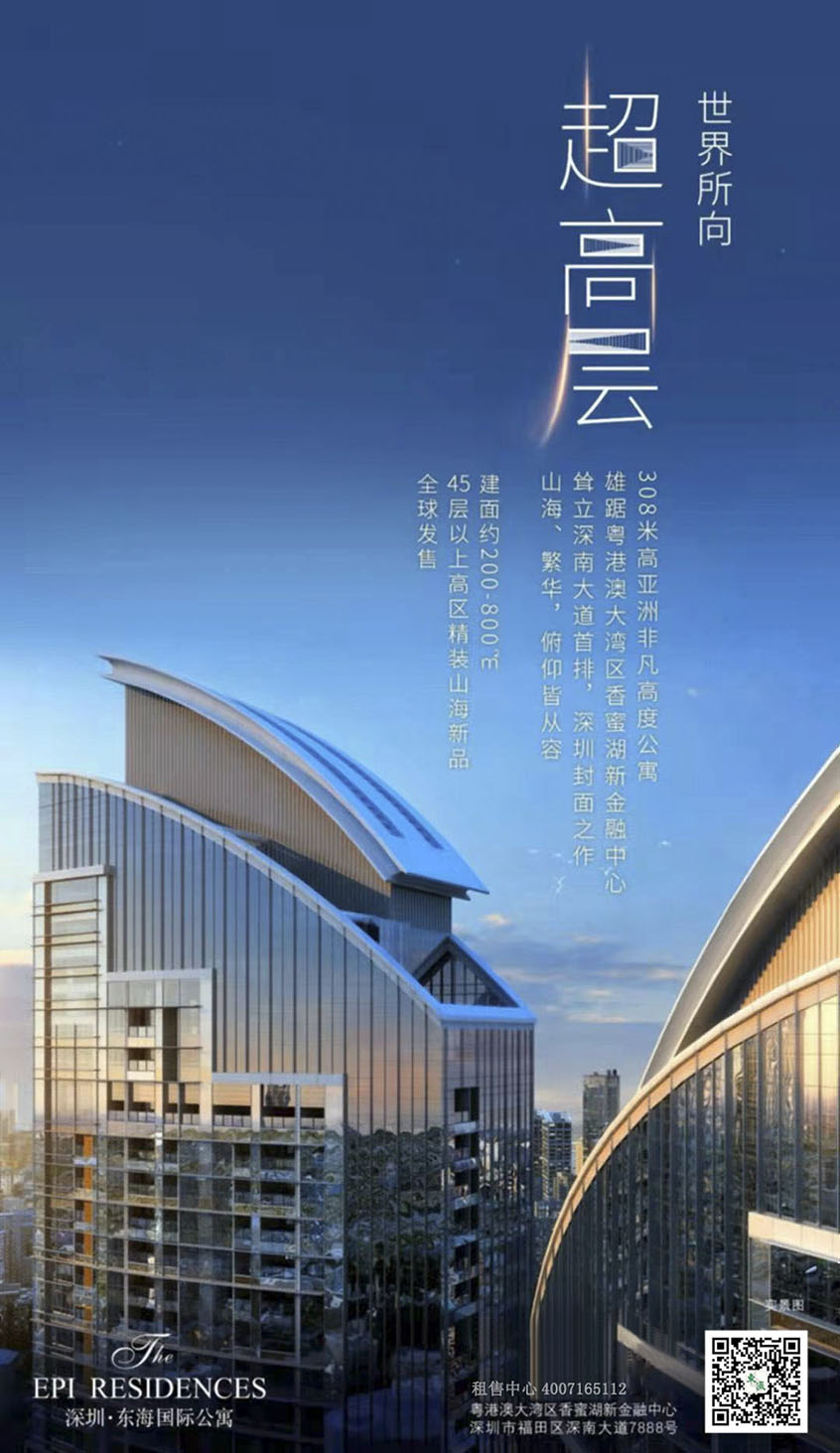 東海國際中心是、亞洲新高度,以308.5米的高度獲譽“亞洲第`一高”的美譽。2016年被譽 為亞洲十大豪`宅之一、俯瞰全城、無可的景觀,真正坐擁山、海、城三重景觀、南看深圳灣海景及紅樹林鳥類自然保護區(qū)、北面可將443公頃的塘朗山公園盡 收眼底、東西方向欣賞著深南大道都市繁華美景、條深圳大道、一直承載著特區(qū)的輝煌與未來