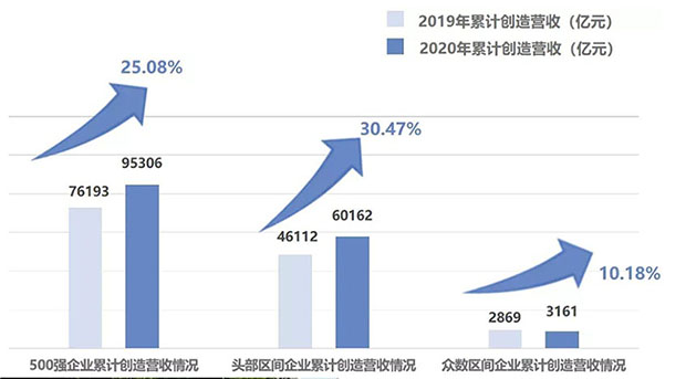營收規(guī)模加速放大,上榜企業(yè)累計實現(xiàn)營業(yè)收入 9.5306 萬億,較上年增長 25.08%
