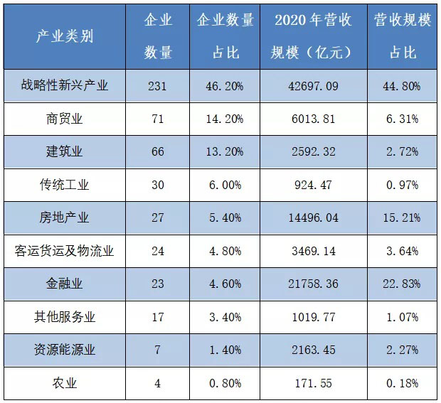 (2021深圳500強各行業(yè)企業(yè)數(shù)量及營業(yè)收入情況一覽表)
