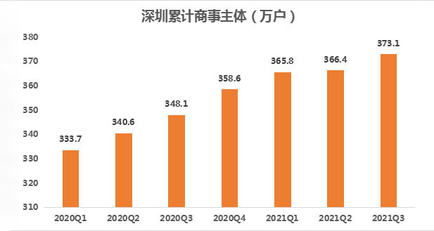 此外,今年前三季度深圳商事主體登記再次交出亮眼成績單。1至9月,全市新登記商事主體379451戶,其中企業(yè)245724戶,個體戶133727戶;全市商事主體總量達到373.1萬戶,繼續(xù)保持全國大中城市首位。商事主體的數(shù)量反應(yīng)了一座城市的魅力所在