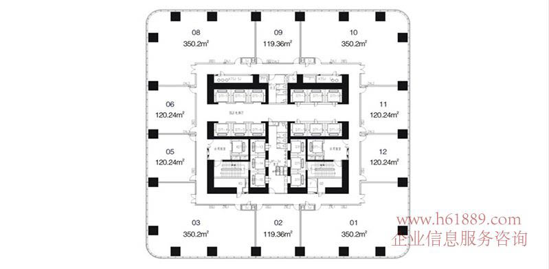 高區(qū) 50到67F 辦公平面 戶型圖片