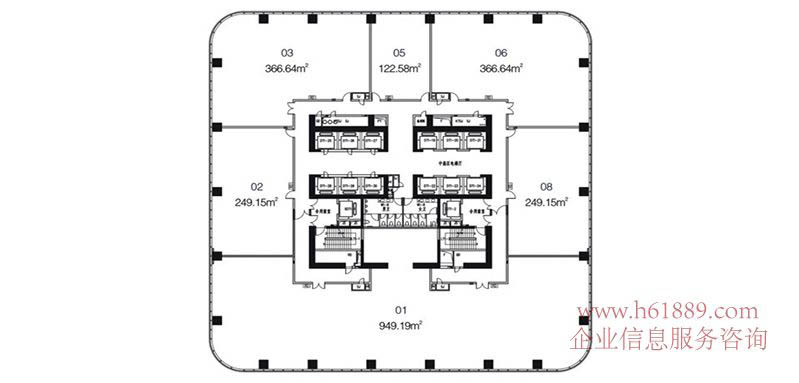 中高區(qū) 38到49F 辦公平面 戶型圖片