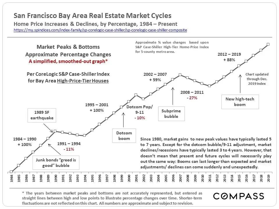 被譽(yù)為“科技灣區(qū)”的舊金山灣區(qū),擁有以斯坦福、加州大學(xué)伯克利分校等20多所科技研究型大學(xué),也是谷歌、蘋果、英特爾、Facebook等企業(yè)全球總部。次貸危機(jī)時(shí)期,舊金山灣區(qū)房?jī)r(jià)下探27%,在隨后的新一輪的高科技熱潮中,舊金山灣區(qū)房?jī)r(jià)上漲88%