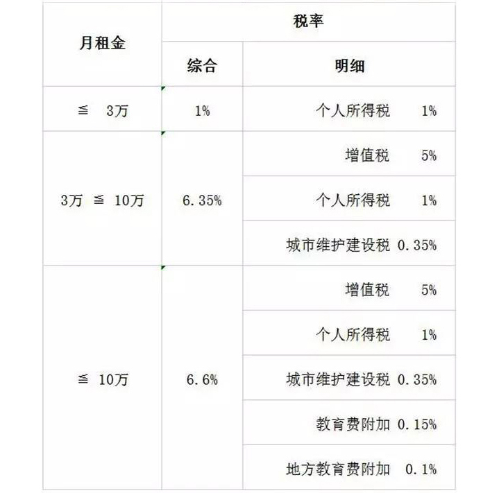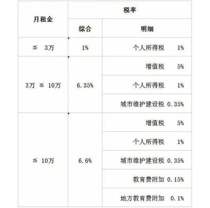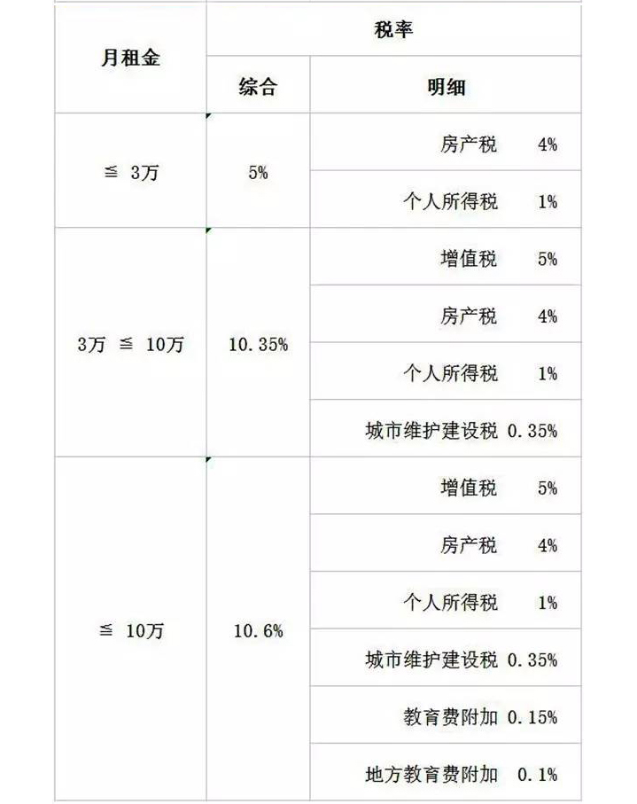 小于: 10萬、租賃稅:3%、轉(zhuǎn)租:1%
