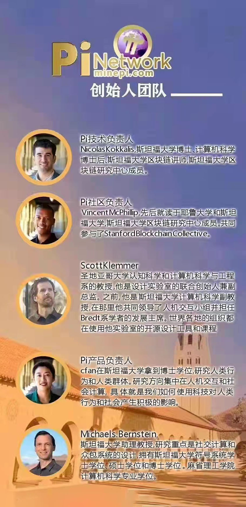 Pi幣 派幣 的核心團隊由來自全球各地的斯坦福大學畢業(yè)生組成,其中包括兩名博士和一名MBA。
