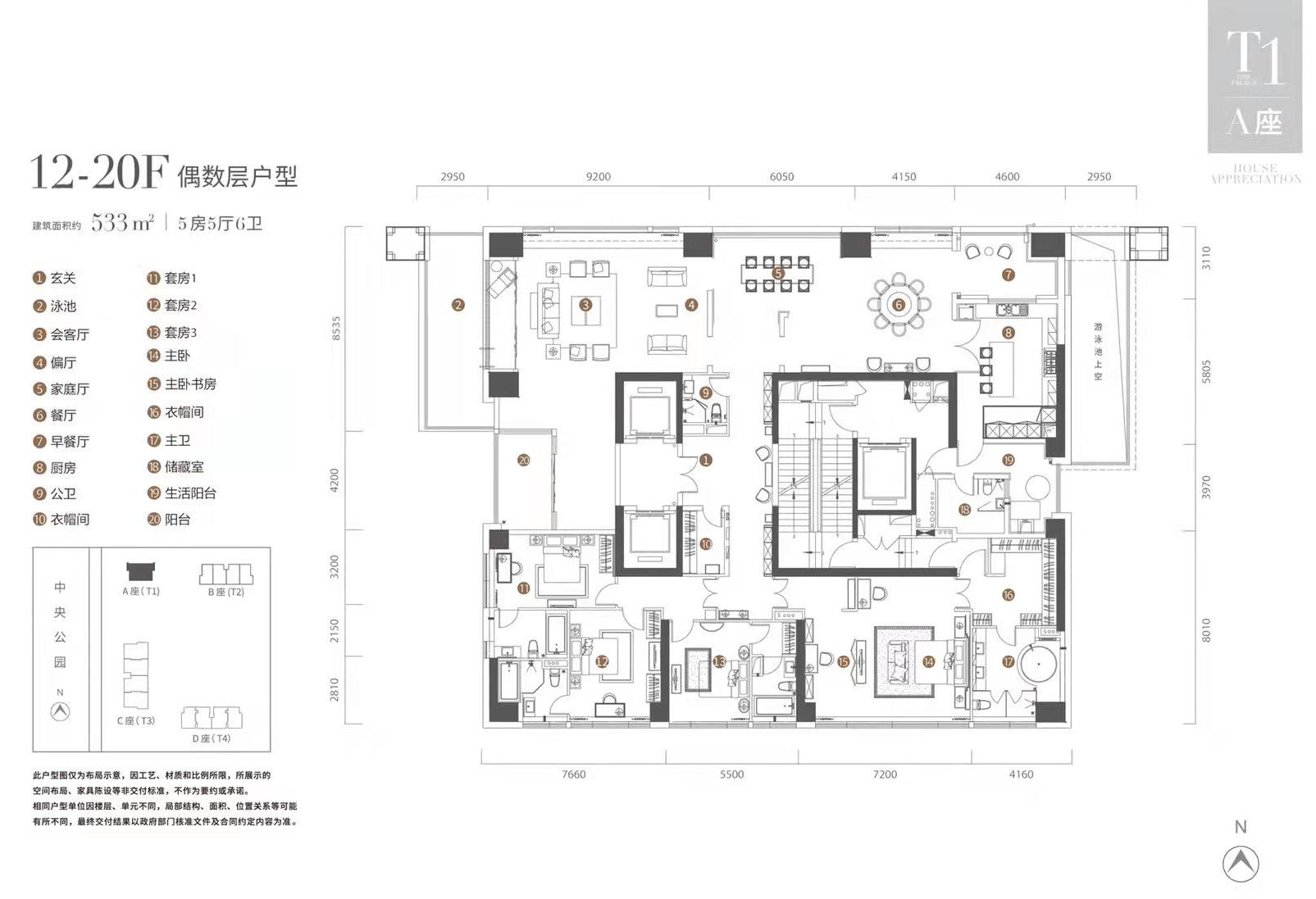 【1棟A座戶型鑒賞】533㎡5房5廳6衛(wèi)