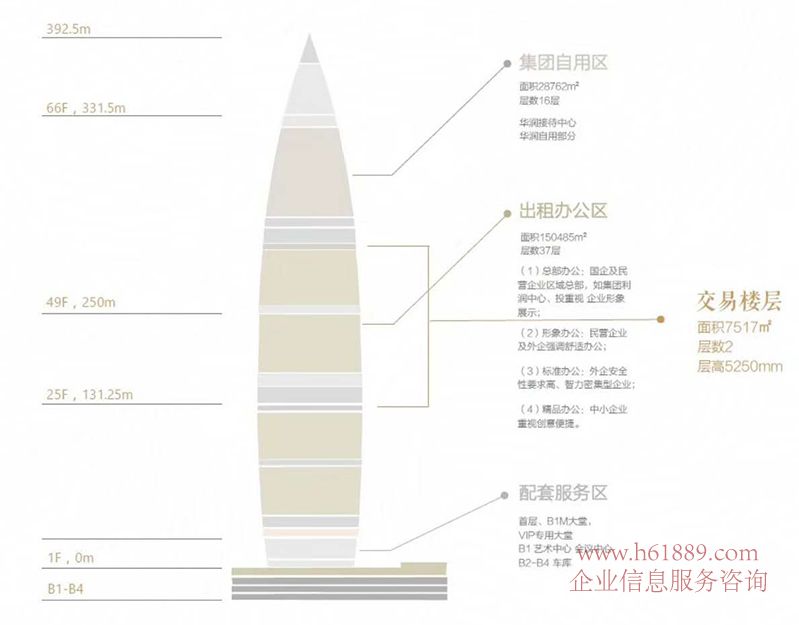 建筑高度:華潤(rùn)總部大廈:392.5m