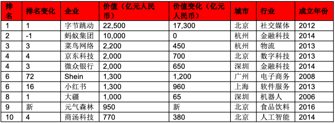 各城市最大的獨(dú)角獸分別是誰?中國前十大獨(dú)角獸企業(yè)分別是