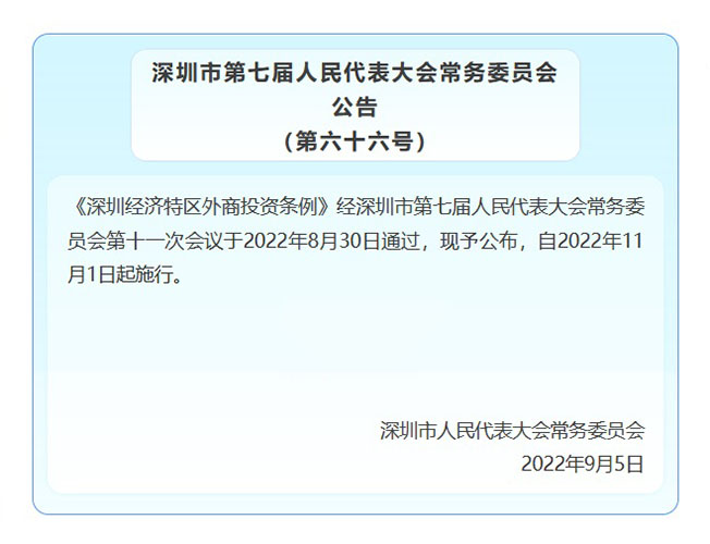 2022年11月1日起施行《深圳經(jīng)濟(jì)特區(qū)外商投資條例》解讀附全文