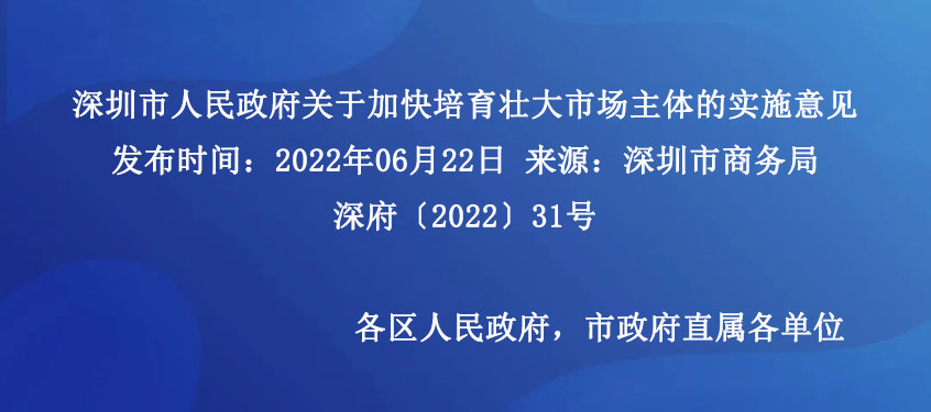 深圳市人民政府關(guān)于加快培育壯大市場主體的實施意見