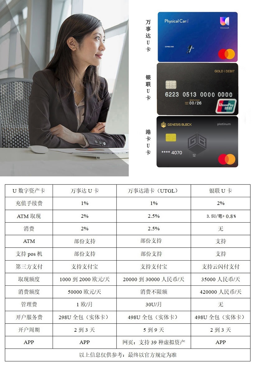 支持加密貨幣的、萬事達卡UnionCash 借記卡 萬事達卡U卡,為歐盟銀行借記卡,其申請條件寬松,僅需手機號和身份證便可,且不與國內(nèi)征信系統(tǒng)聯(lián)網(wǎng),被執(zhí)行人也可辦理??捎糜诖婕用茇泿?、虛擬貨幣、比特、以太等。與其他萬事達卡使用無差別,可在所有支持萬事達的銀行 ATM 取出現(xiàn)金,也可綁定微信支付寶進行消費,提現(xiàn)等、同時可在全球任何國家取出法定貨幣,如人民幣,美元,港元,歐元,英鎊,日元,韓元等全球主流貨幣