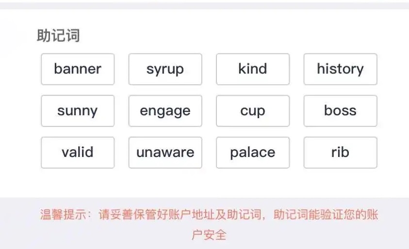 助記詞等于=銀行卡號+銀行卡密碼。助記詞,方便用戶記憶和記錄。由12個單詞組成,每個單詞之間有一個空格,助記詞和私鑰具有同樣的功能:只要輸入助記詞并設(shè)置一個新的密碼,就可以導(dǎo)入錢包;比如我們的小狐貍包APP打不開了,一個錢包只有一套助記詞且不能修改。因此,在備份時一定要抄寫下來,必須進行多次檢驗核對,防止抄寫錯誤