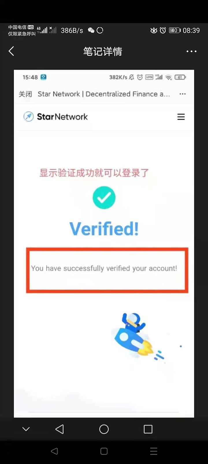 第五步、登陸電子郵箱、找到并打開 Star Network 星網(wǎng) 發(fā)來的郵件、點(diǎn)擊郵件中間位置的鏈接