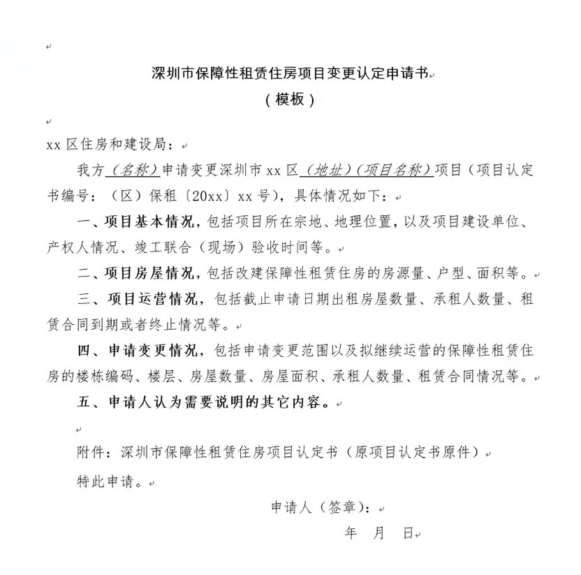 深圳市保障性租賃住房項(xiàng)目變更認(rèn)定申請(qǐng)書