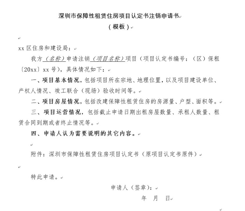 深圳市保障性租賃住房項(xiàng)目認(rèn)定書注銷申請(qǐng)書