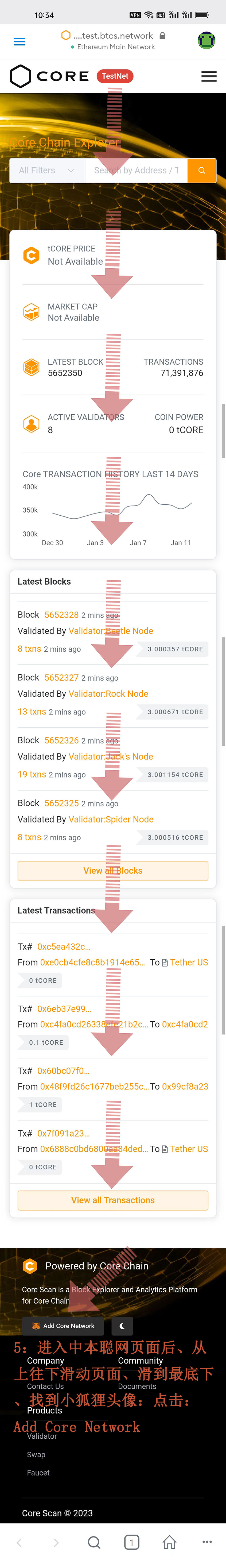 5:進(jìn)入中本聰網(wǎng)頁(yè)面后、從上往下滑動(dòng)頁(yè)面、滑到最底下、找到小狐貍頭像:點(diǎn)擊:Add Core Network