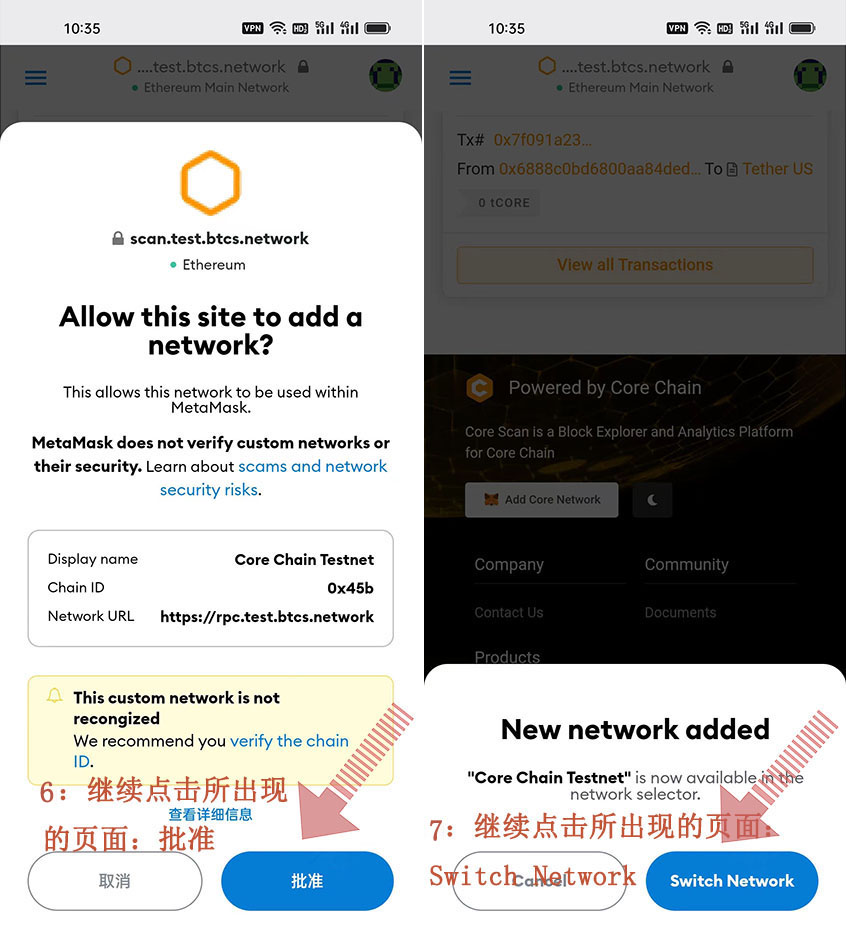 7:繼續(xù)點(diǎn)擊所出現(xiàn)的頁(yè)面:Switch Network 添加CORE“酷爾幣”主網(wǎng)絡(luò)