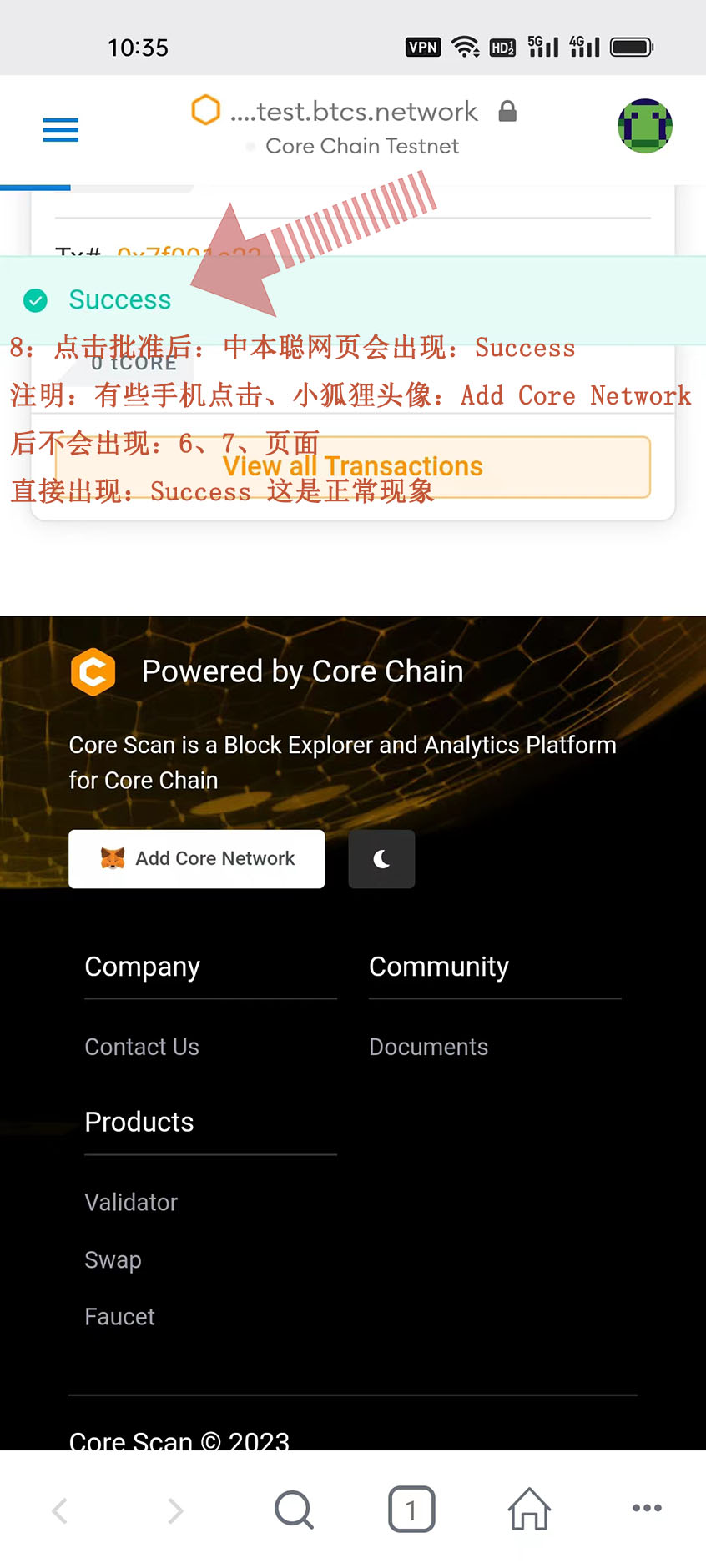 8:點(diǎn)擊批準(zhǔn)后:中本聰網(wǎng)網(wǎng)頁(yè)回出現(xiàn):Success