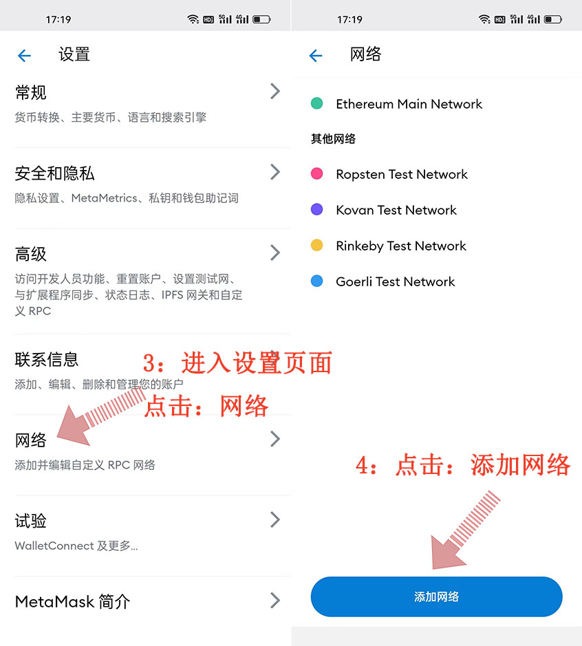 3:進(jìn)入設(shè)置頁(yè)面、點(diǎn)擊:網(wǎng)絡(luò)、4:點(diǎn)擊:添加網(wǎng)絡(luò)