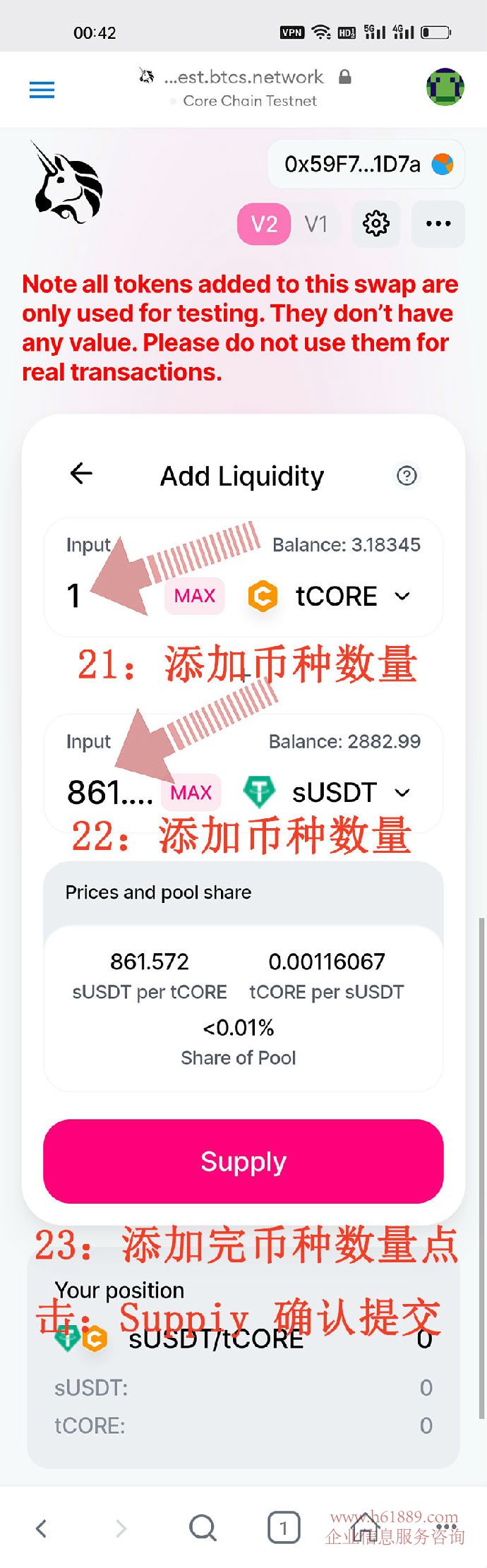 這就是CORE“酷爾幣”Metamask(小狐貍錢/包)怎么添加清除/釋放流動性資金池的具體整個操作流程
