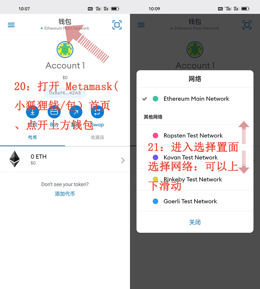20:打開 Metamask(小狐貍錢/包)首頁、點開上方錢包