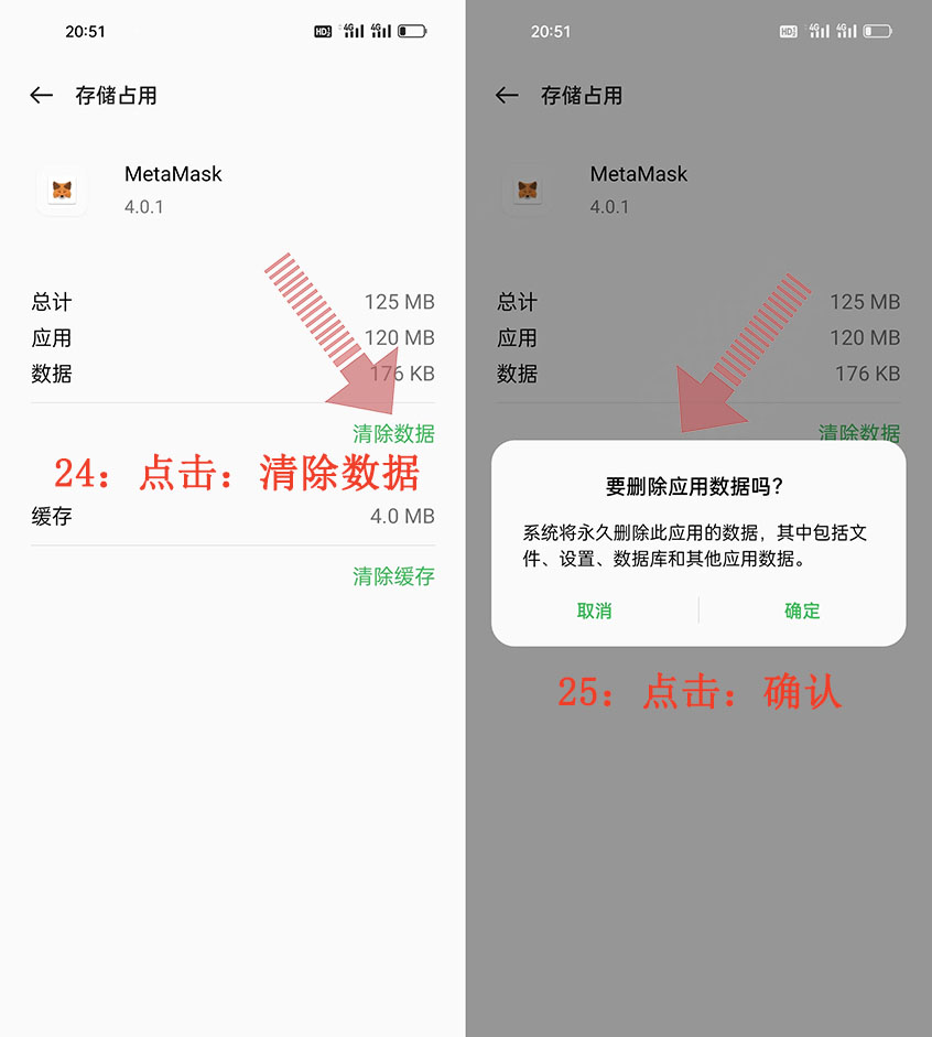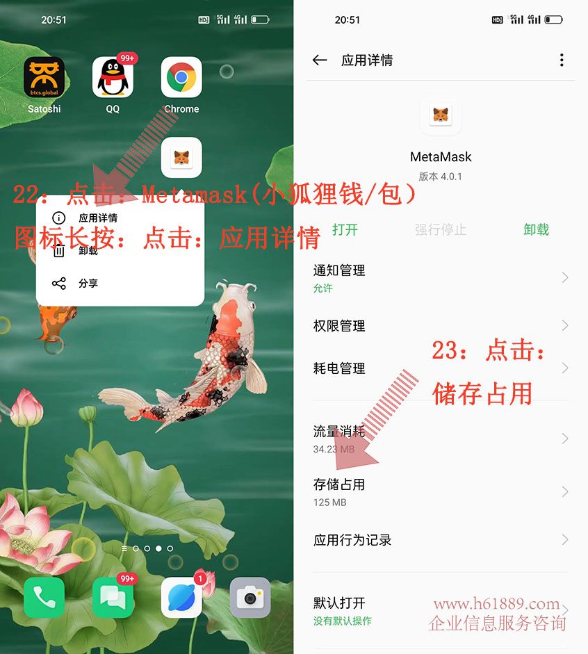22:點擊:Metamask(小狐貍錢/包)圖標長按:點擊:應用詳情