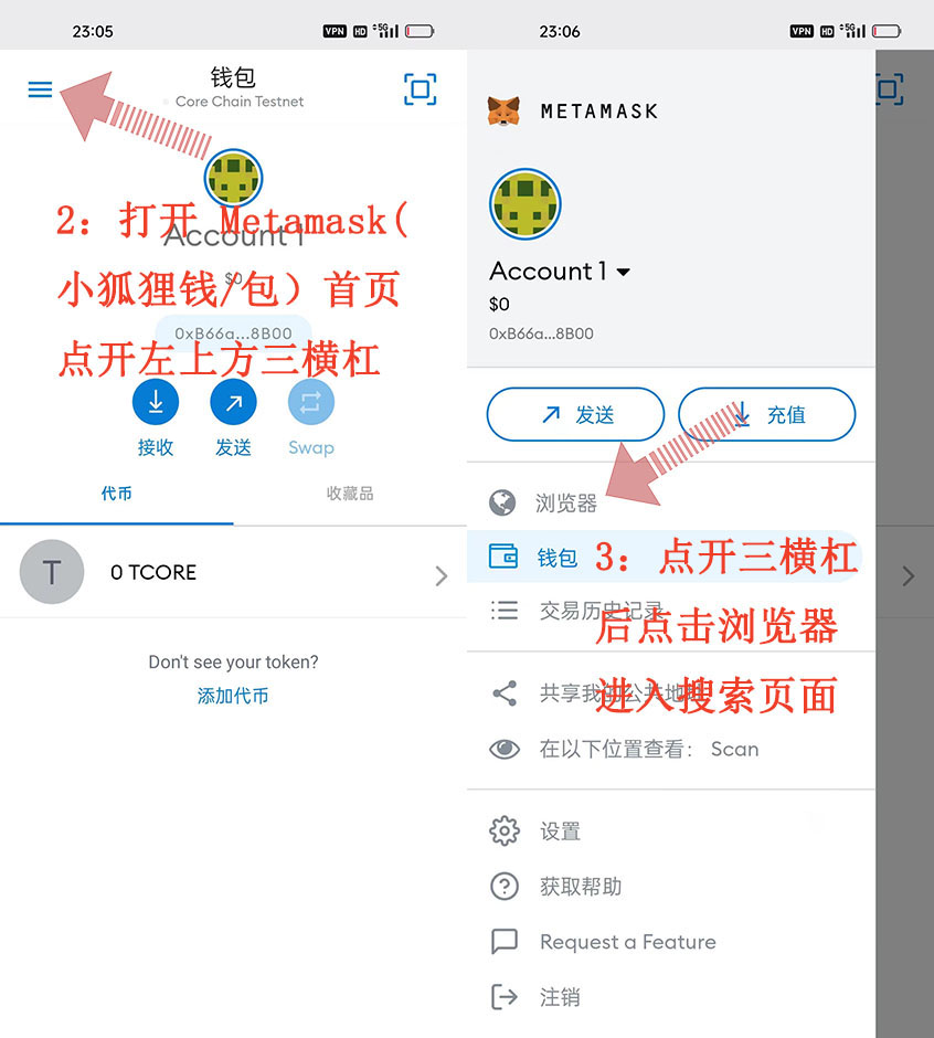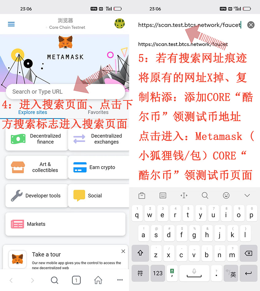 Metamask(小狐貍錢(qián)/包)CORE“酷爾幣”領(lǐng)取測(cè)試幣 操作流程