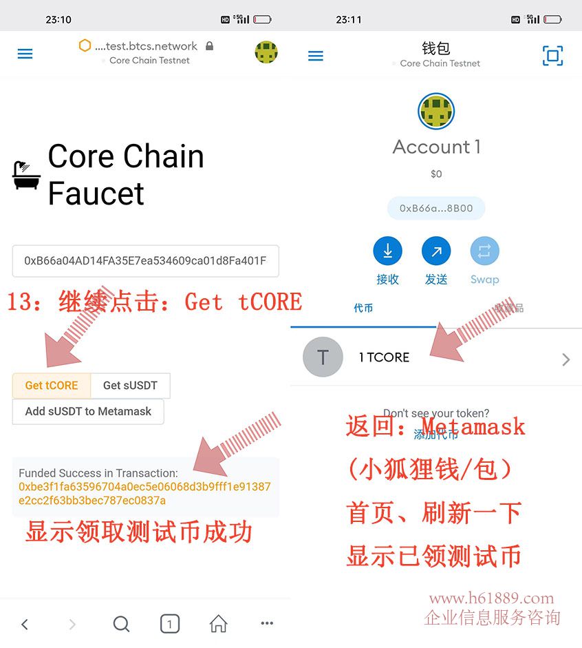 13:繼續(xù)點(diǎn)擊:Get tCORE 領(lǐng)取測(cè)試幣