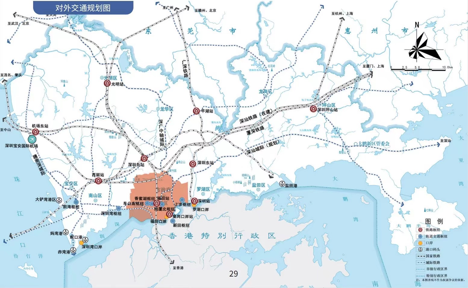 ● 強(qiáng)化福田高鐵站綜合交通樞紐地位,完善皇崗口岸、福田口岸功能, 推進(jìn)城際網(wǎng)絡(luò)建設(shè);加快推進(jìn)深廣中軸城際、穗莞深城際建設(shè)