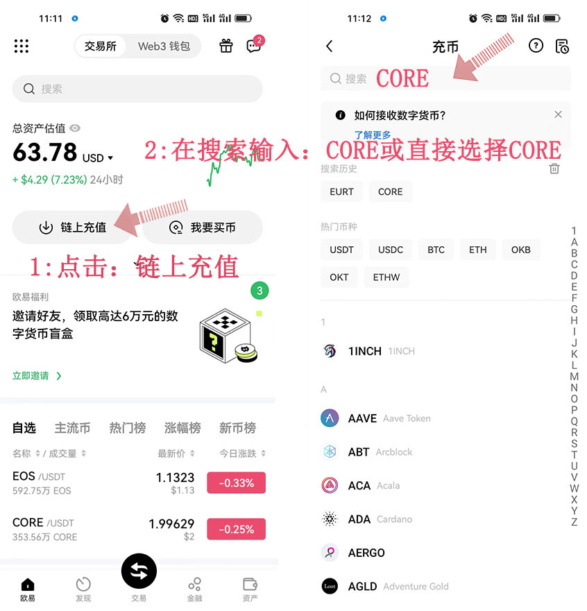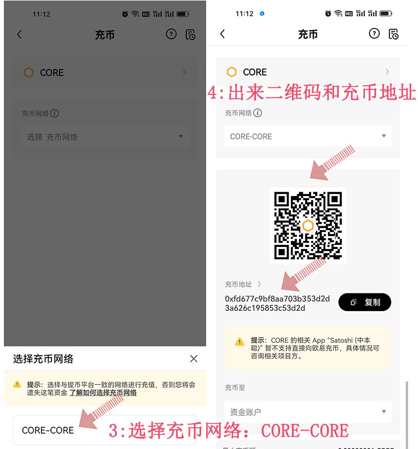 3:選擇充幣網(wǎng)絡(luò):CORE-CORE