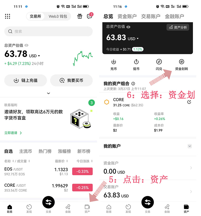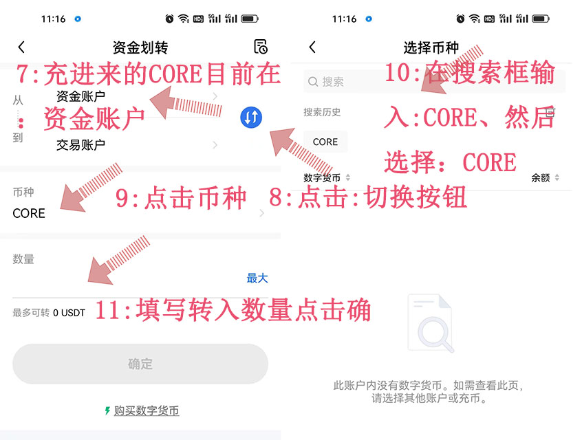 7:充進(jìn)來的CORE目前在:資金賬戶、如果:買賣需要轉(zhuǎn)到交易賬戶