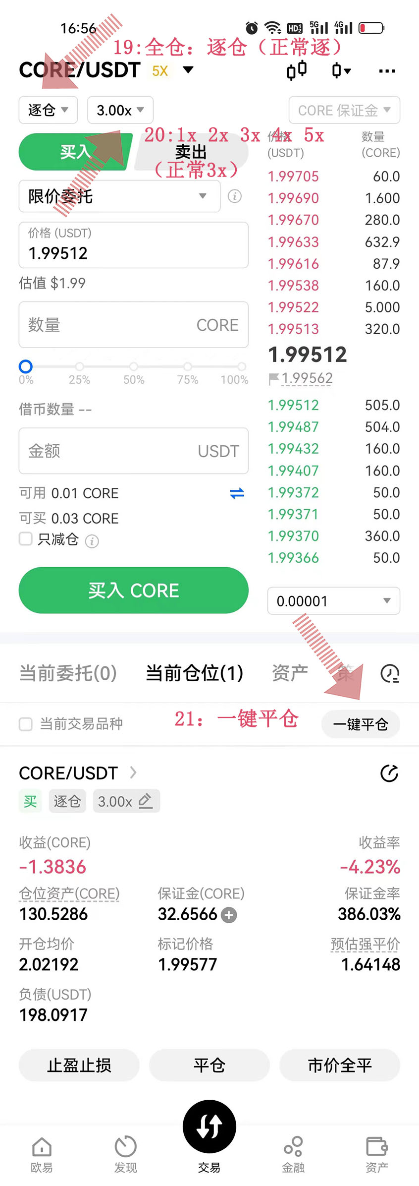 注意:賣也是:先賣杠桿:一鍵平倉 再去賣出現(xiàn)貨倉
