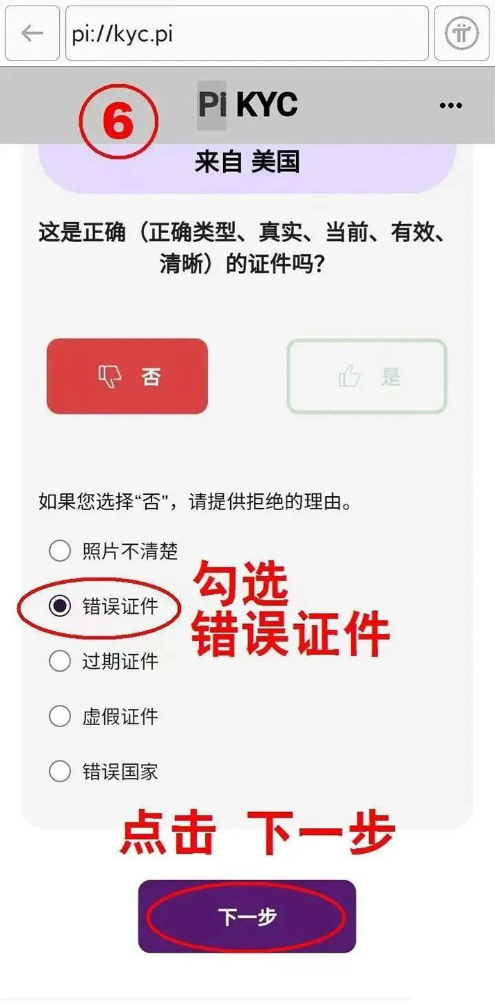 6:點(diǎn)擊:勾選錯(cuò)誤證件、繼續(xù)點(diǎn)擊:下一步