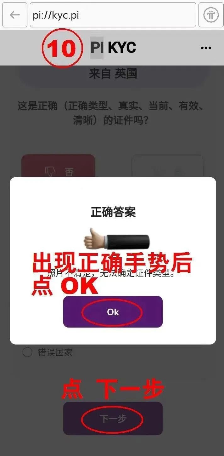 10:點(diǎn)擊:出現(xiàn)正確手勢(shì)后點(diǎn):OK、繼續(xù)點(diǎn)擊:下一步