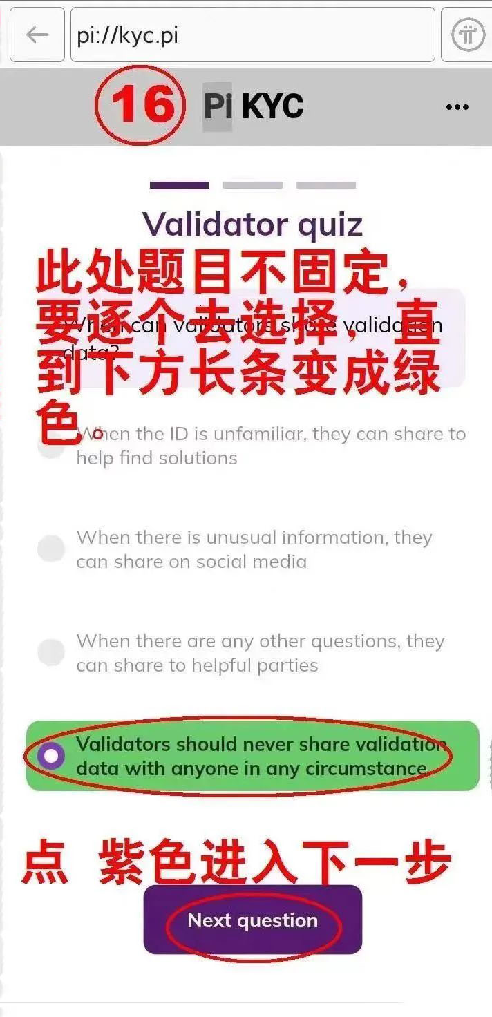 16:此處的題目不固定、要逐個(gè)去選擇、直到下方的黑色條變成綠色、點(diǎn)擊:下一步
