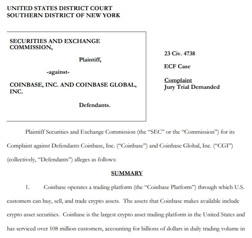 加密貨幣生死攸關(guān)的時(shí)期來(lái)了,在對(duì)幣安起訴后,2023年6月5日美國(guó)證券交易委員會(huì)(SEC)在紐約聯(lián)邦法院對(duì)加密貨幣交易所 Coinbase 提起訴訟。如果說(shuō)業(yè)務(wù)上幣安還可以逃過(guò)一劫的話,不能解決,那Coinbase則會(huì)直接面臨死亡威脅了。因?yàn)?/span>Coinbase80%以上收入來(lái)自美國(guó)市場(chǎng),非法從事證券則有可能讓它事業(yè)萎縮然后轟然倒塌