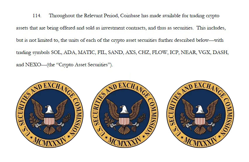 代幣是證券如果交易所被監(jiān)管拆分,那相應(yīng)的上市的這些幣種代幣則應(yīng)該會(huì)歸類為證券了, SOL、ADA、MATIC、FIL、SAND、AXS、CHZ、FLOW、ICP、NEAR、VGX、DASH 和 NEXO這些也只是開始被SEC直接俄列出來(lái)的,后續(xù)的一些也會(huì)繼續(xù)包含在內(nèi)